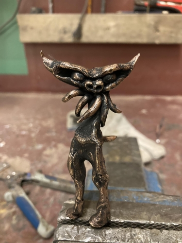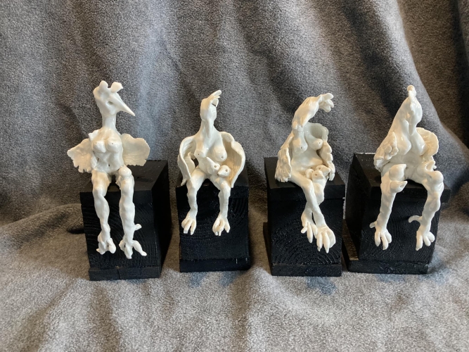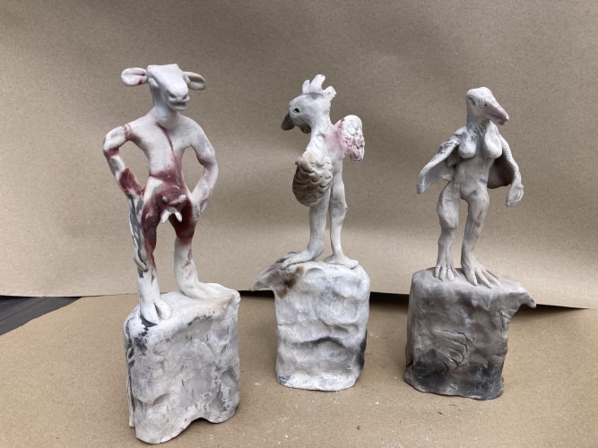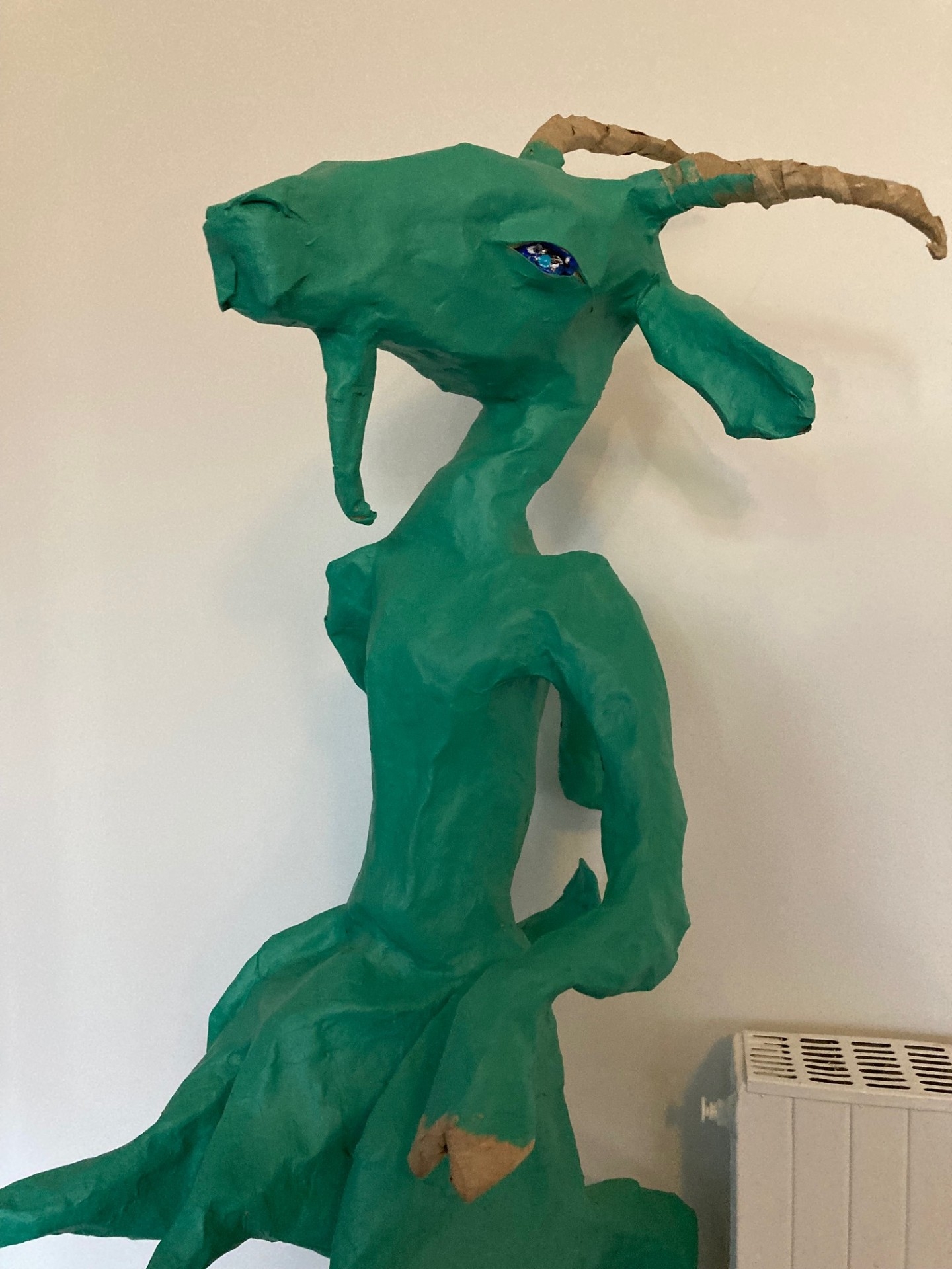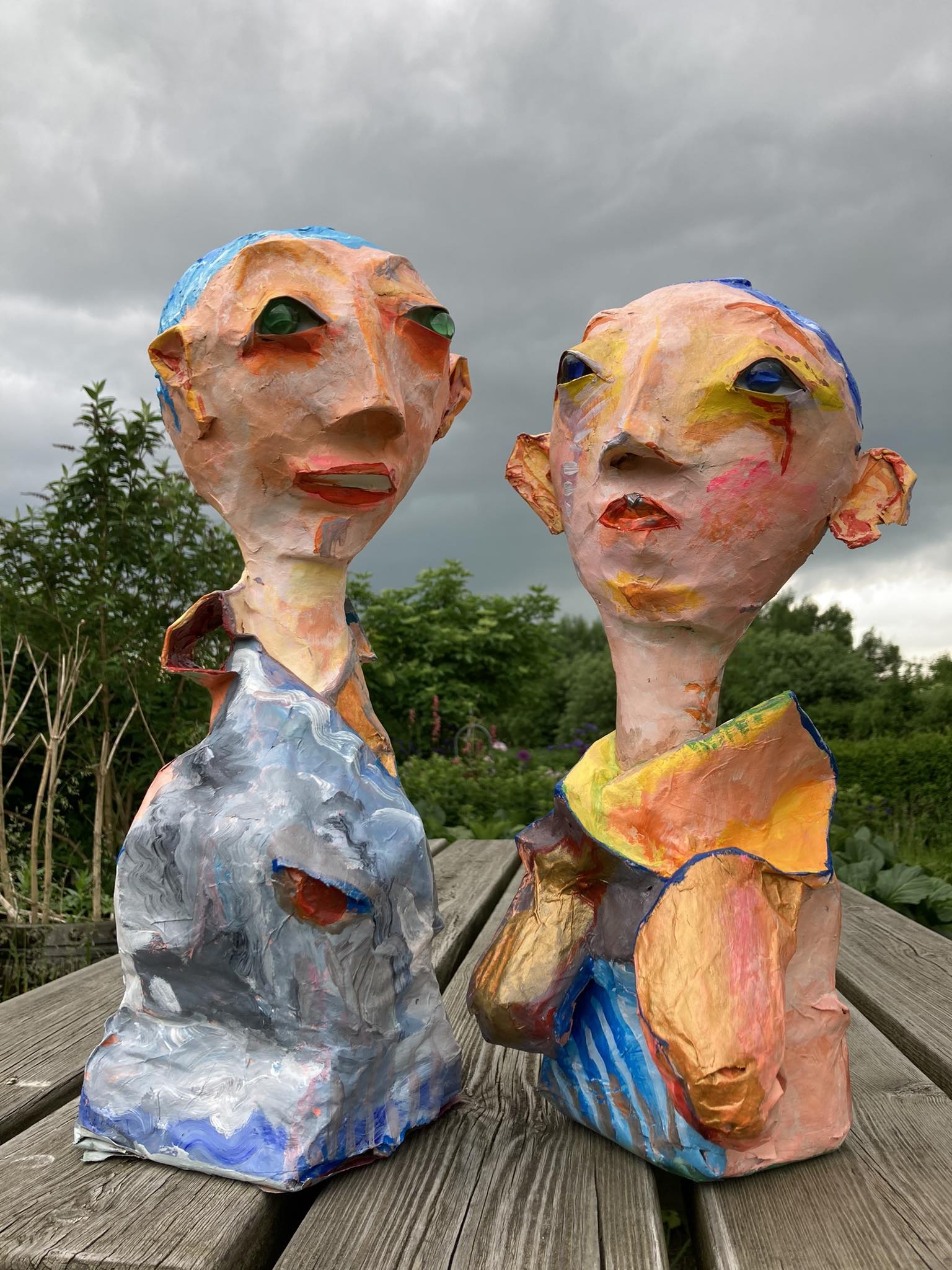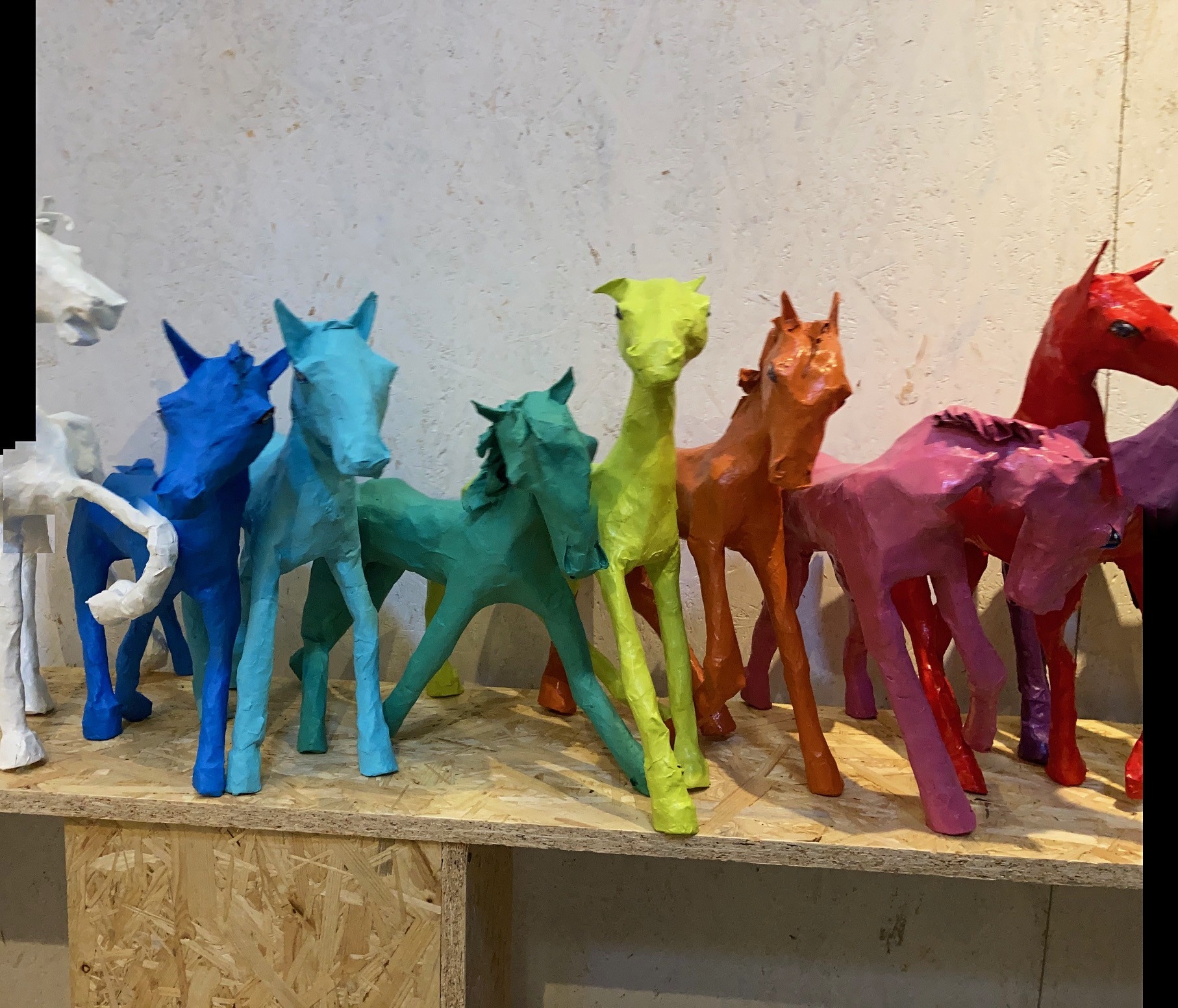 Kunstnerisk skaber jeg skulpturer i bronze, keramik og pap. De to brancher veksler gennem året, og efter aftale med kunden. De forenes bedst gennem dekorationsmaleri – enten det er en væg i en stue, eller en mur der skal udsmykkes.